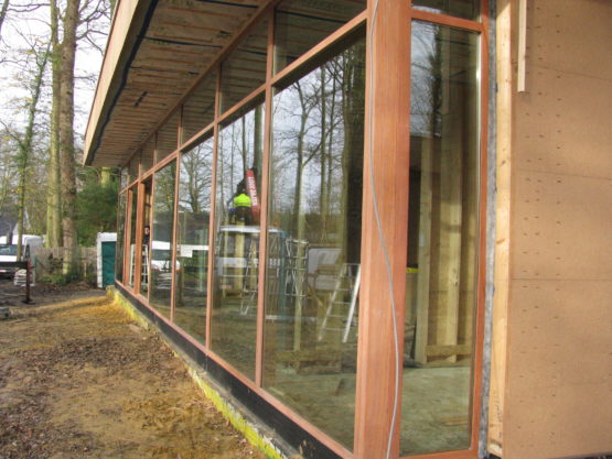 Voor grote glasoppervlakken volstaat traditioneel schrijnwerk vaak niet. Hiervoor kan een vliesgevel (of gordijngevel of glasgevel) een oplossing bieden. In de meeste gevallen bouwen wij een houten structuur waarop wij een aluminium draagstructuur bevestigen om het glas te dragen.