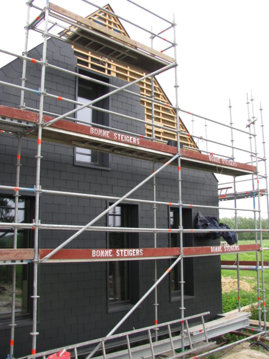 Een houtskelet- of houtmassiefbouw kunt u op verschillende manieren afwerken. In veel gevallen is de keuze louter esthetisch aangezien de structuur, isolatie en luchtdichtheid zich achterliggend bevinden. Afhankelijk van uw keuze schenken wij aandacht aan de aansluiting met buitenschrijnwerk, maaiveld,... Hieronder vindt u een aantal mogelijkheden hoe u het gebouw kunt afwerken.